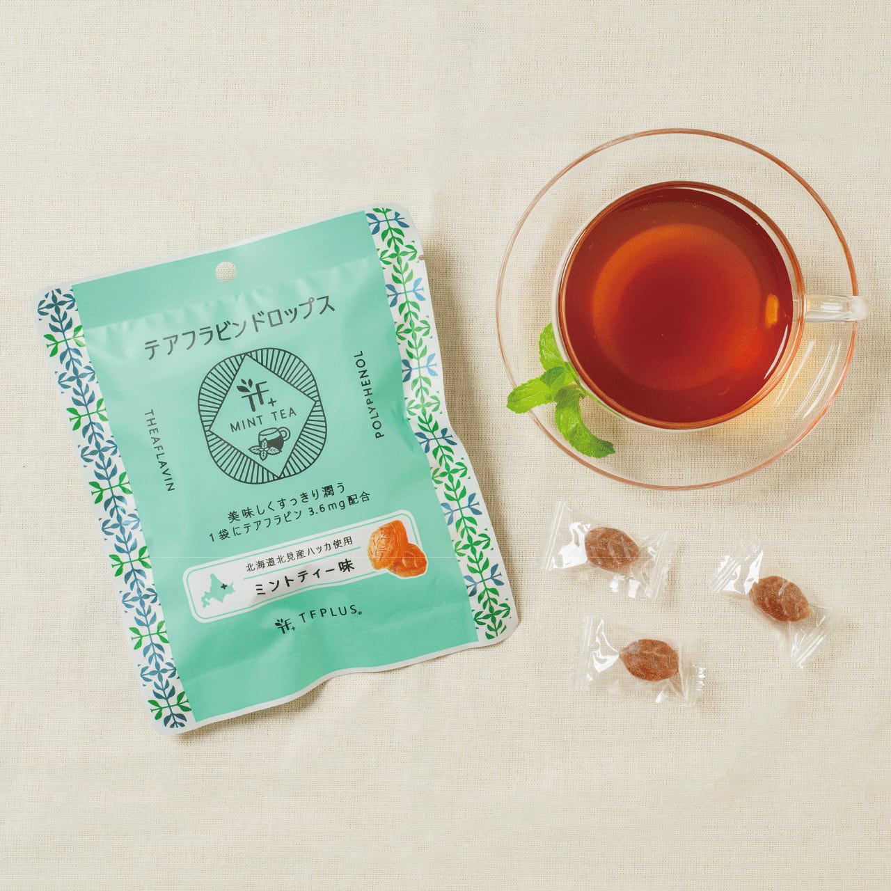 紅茶ポリフェノール「テアフラビン」配合のキャンディ。