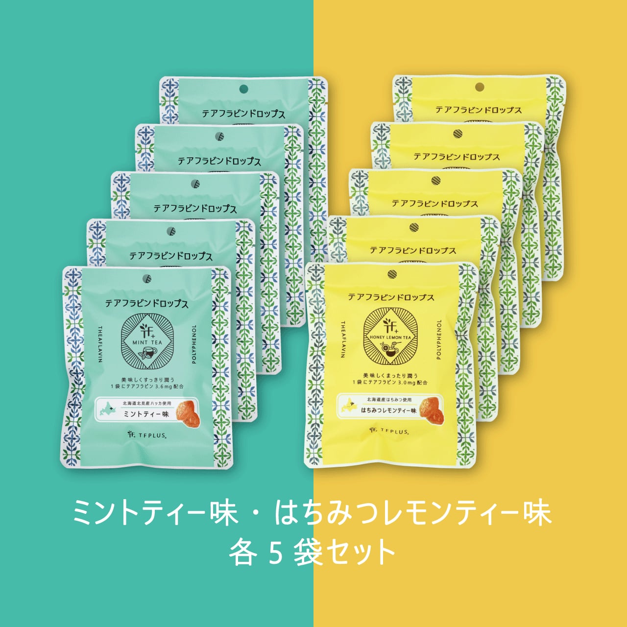『テアフラビンドロップス』ミントティー味・はちみつレモンティー味 各5袋